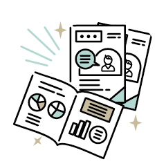 企業の取り組みや理念、サービスの紹介に加え、退職者向け施策や健康推進施策に関する紙・デジタル媒体など、多様なニーズに対応した制作を行っています。